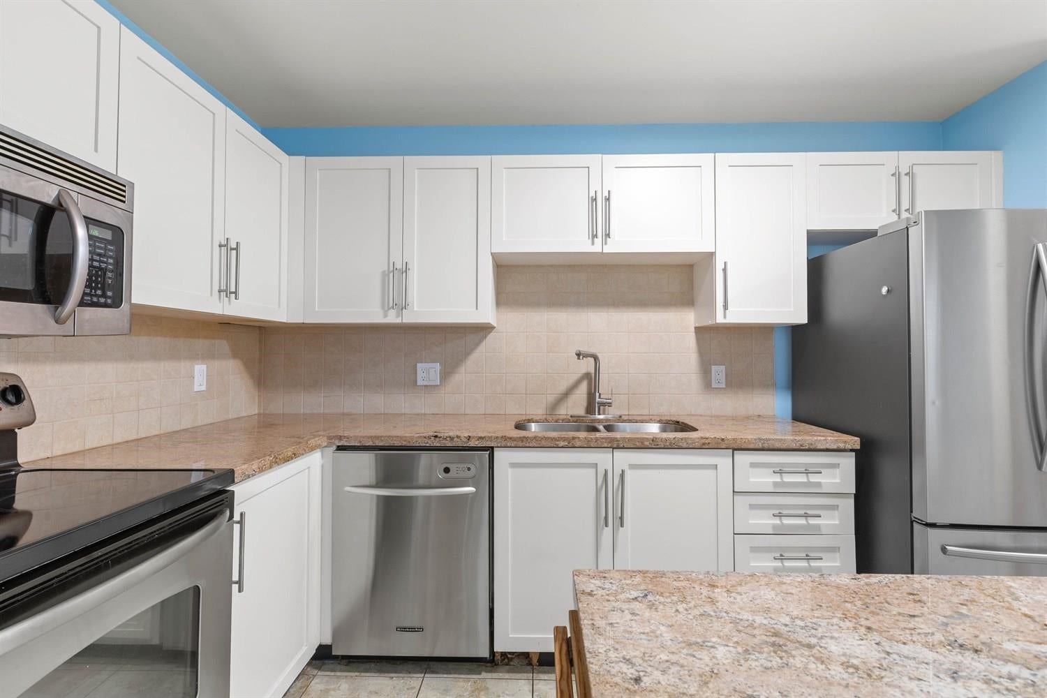 Stunning, Bright & Open 2-Bedroom Penthouse at The Beacon! This beautifully bright and open penthouse suite offers spectacular south-facing views from three private balconies. The home features laminate flooring throughout the living room, hallway, and both bedrooms, with tile in the kitchen, laundry room and bathrooms. The modern kitchen is equipped with stainless steel appliances and granite countertops. Perfectly situated close to shopping, grocery stores, amenities, and transit, this home provides exceptional convenience. Additional highlights include in-suite laundry, a large storage locker on the same floor, and two underground parking stalls. 2 Pets, Max 20 pounds. Don’t miss your chance—call your REALTOR® to book your viewing!